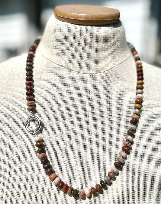 Agate and Red Jasper Hand Knotted Candy Rainbow Necklace