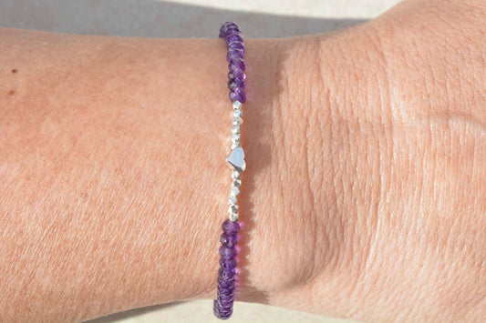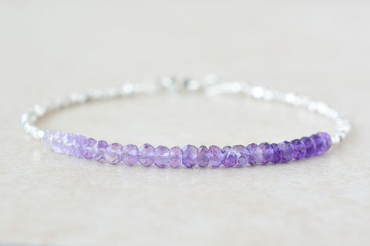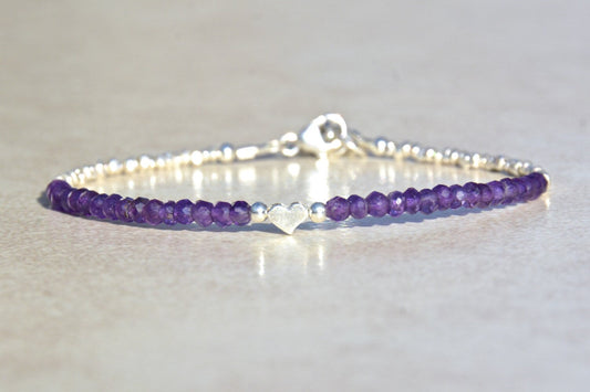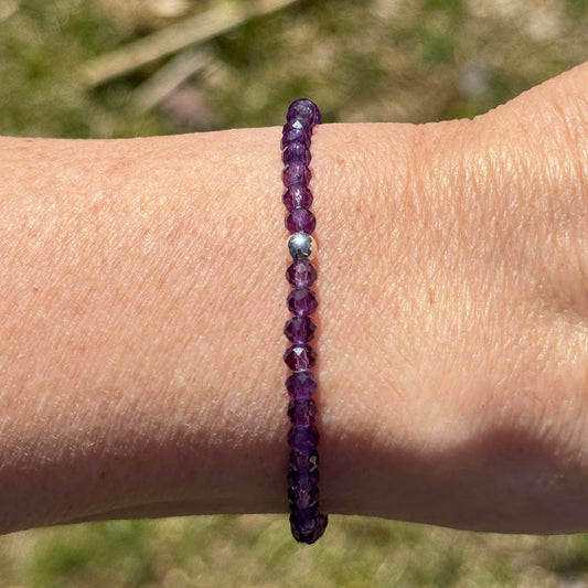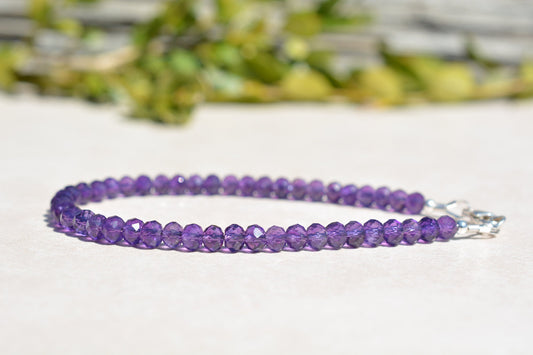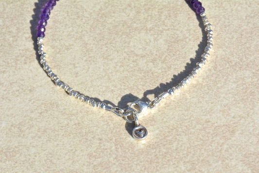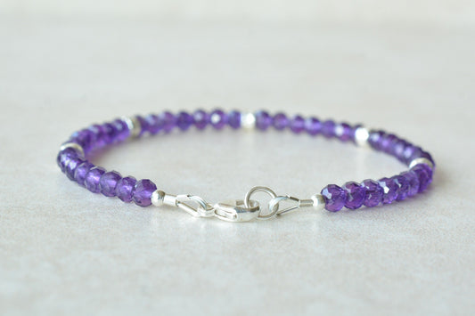 Silver Beaded Bracelet with February Birthstone Amethyst