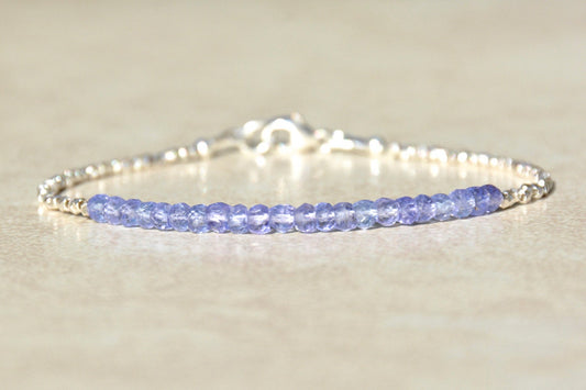 Tanzanite & Silver Beaded Gemstone Bracelet