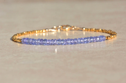 Tanzanite Bracelet Gold Vermeil Beaded Gemstone Bracelet