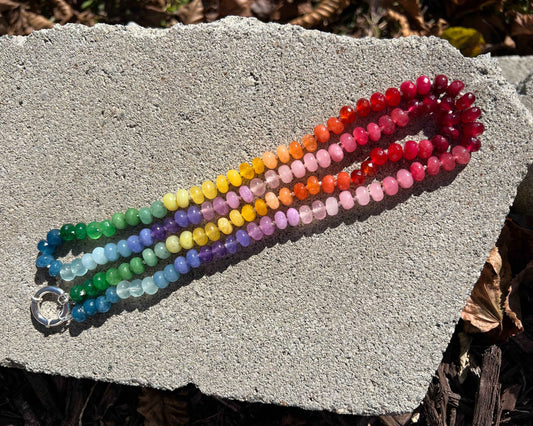 Super Long Hand Knotted Rainbow Jade Gemstone Necklace