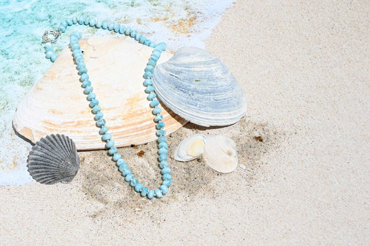 Hand Knotted Larimar Gemstone Necklace with Silver
