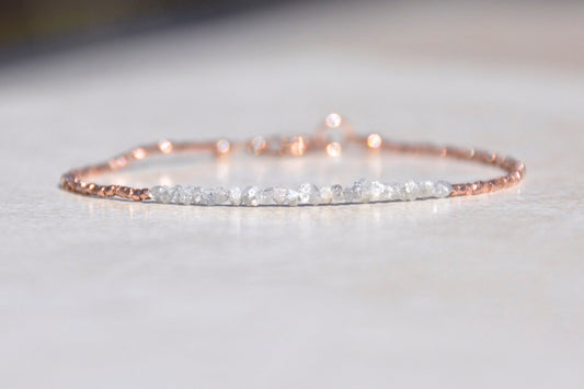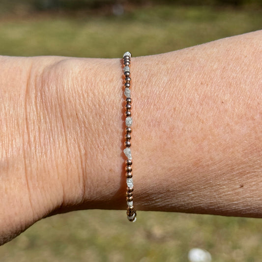 Uncut Raw Diamond Beaded Bracelet with Rose Gold Beads
