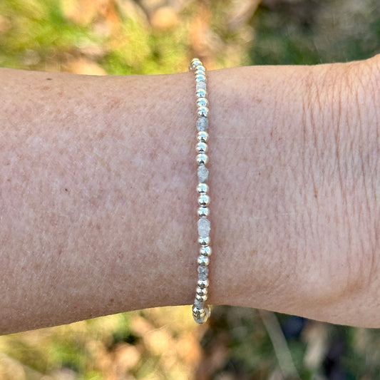 Raw Diamond Bracelet and Gold Filled Round Beads
