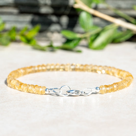 Natural Citrine November Birthstone Beaded Bracelet with Silver