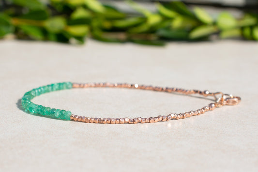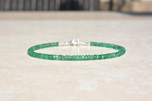 Green Emerald Beaded Gemstone Bracelet | May Birthstone