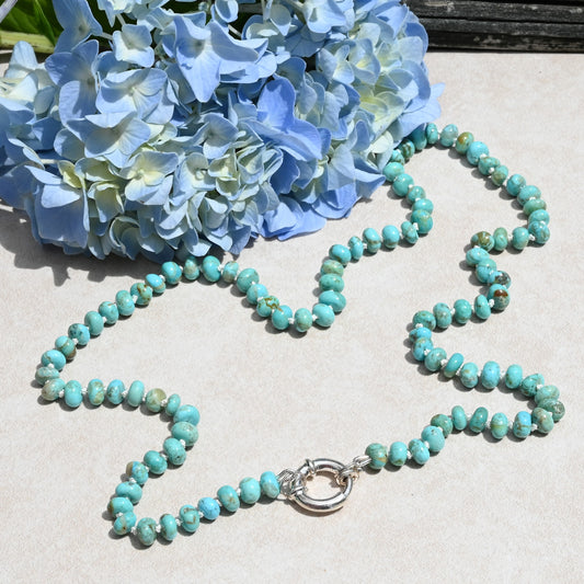 Hand Knotted Kingman Turquoise Necklace with Gold