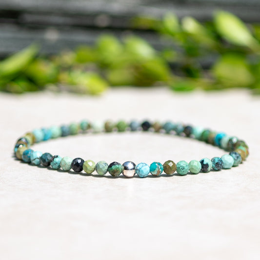 Dainty Natural Arizona Turquoise Beaded Bracelet, December Birthstone