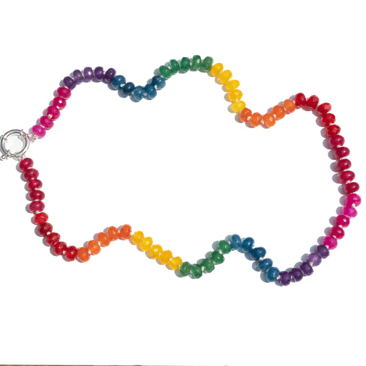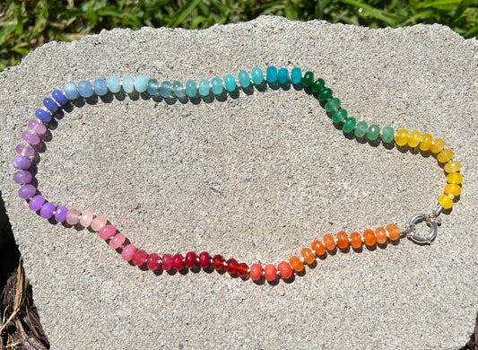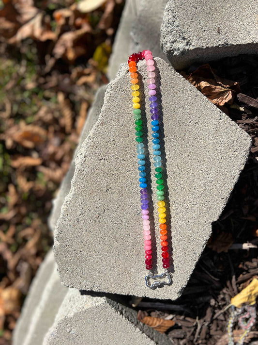 Super Long LGBTQ+ Hand Knotted Rainbow Candy Gemstone Necklace