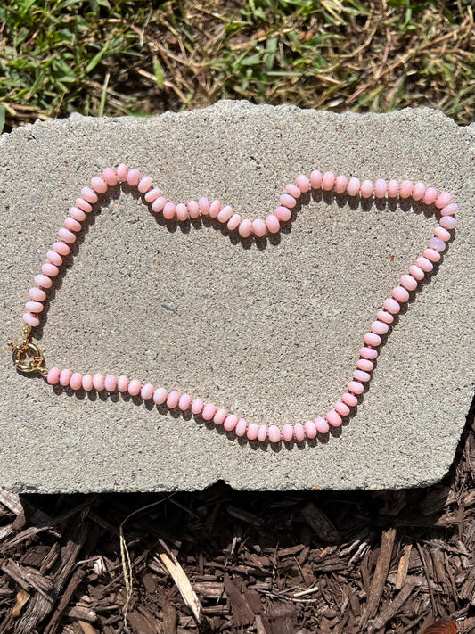 Natural Pink Opal Hand Knotted Necklace OOAK