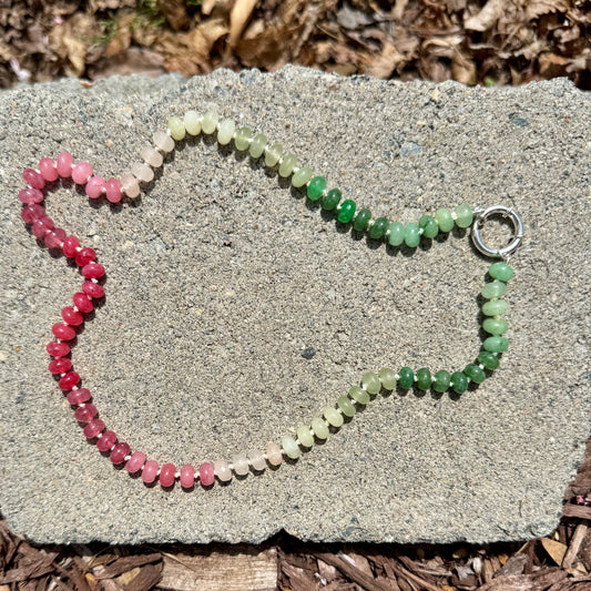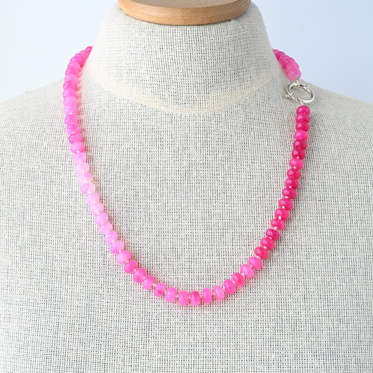 Shaded Pink Gemstone Hand Knotted Necklace & Sterling Silver