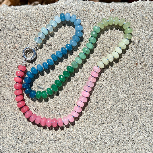 Welcome to Walters Wish. Prepare to be dazzled by our latest collection of 'Hand Knotted Gemstone Necklaces'. In this vibrant assembly of natural beauty, you'll find every color of the rainbow represented. Feel a spark of joy every time you turn heads with our superb hand-knotted gemstone necklaces. We have a gorgeous array of gems from Amazonite to Turquoise , and the stars of the show are our beaded Jade pieces, with an impressive selection to choose from.