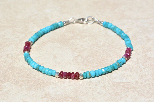 Turquoise and Ruby Beaded Bracelet