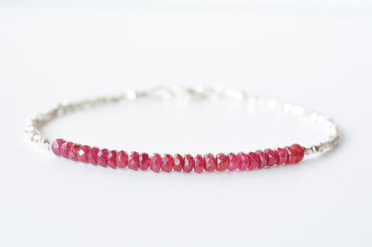 Ruby & Silver Beaded Birthstone Bracelet, July Birthstone