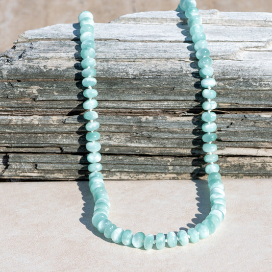 Hand Knotted Green Chatoyant Rondell Necklace | June Birthstone