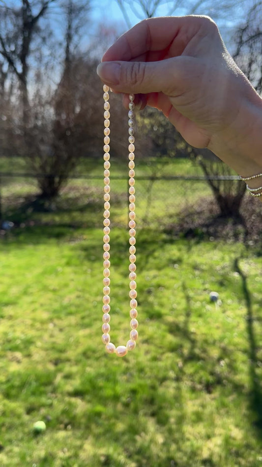 Graduated Natural Freshwater Pearl Hand Knotted Necklace OOAK