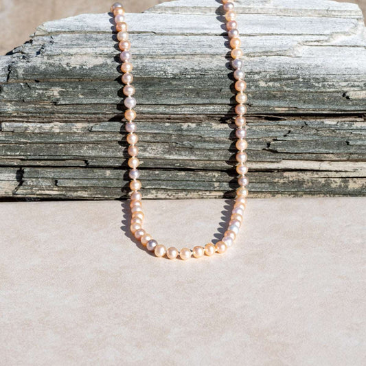 Natural Freshwater Peach and Lavender Pearl Hand Knotted Necklace OOAK