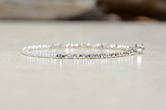 Natural Rainbow Moonstone June Birthstone Bracelet with Silver
