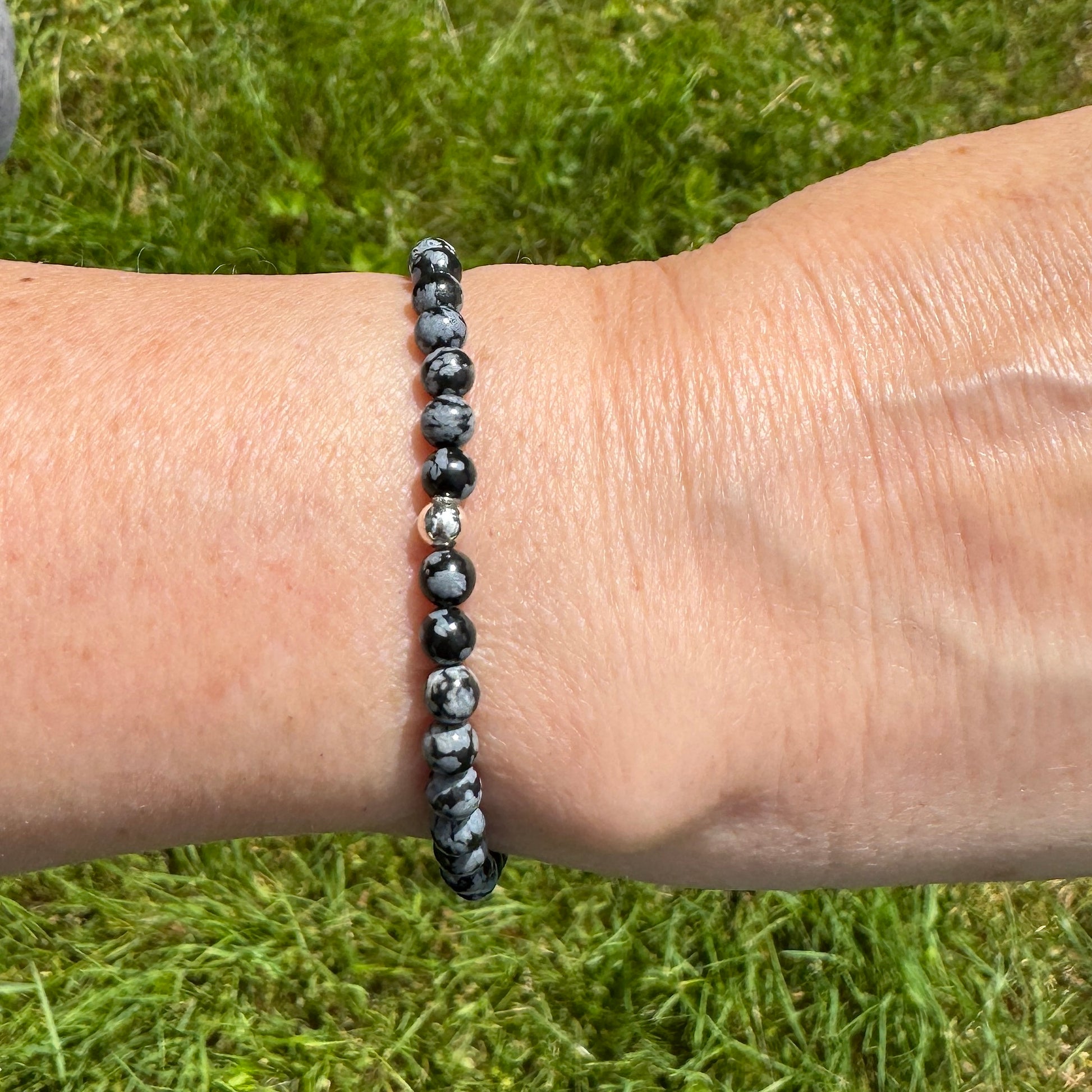 Beaded Stretch Bracelet made with Snowflake Obsidian