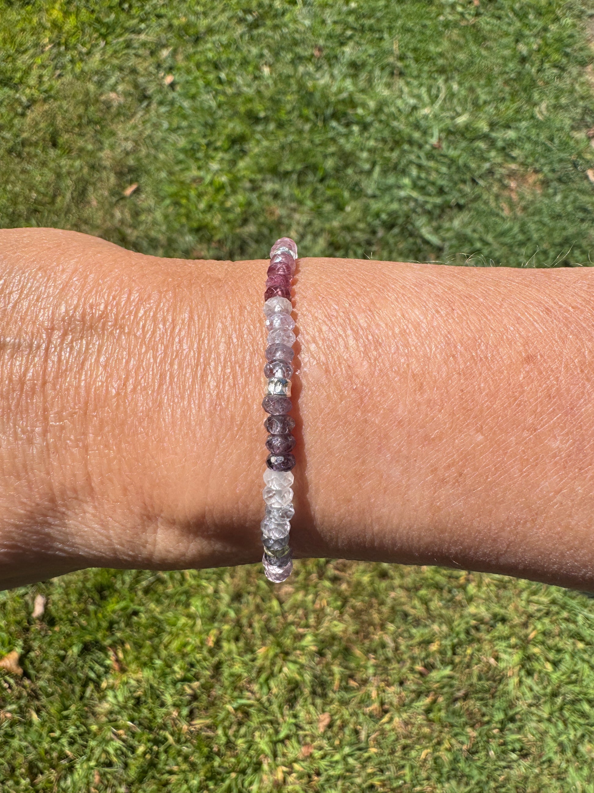 Add a vibrant pop of color with our Multi-Spinel Beaded Bracelet. Featuring a hand-strung mix of natural spinel beads—from fiery reds and blues to soft pinks—this elegant piece pairs beautifully with other bracelets or shines on its own. Durable and radiant, spinel offers a brilliant sparkle and emotional strength. Perfect for daily wear or as a thoughtful gift.