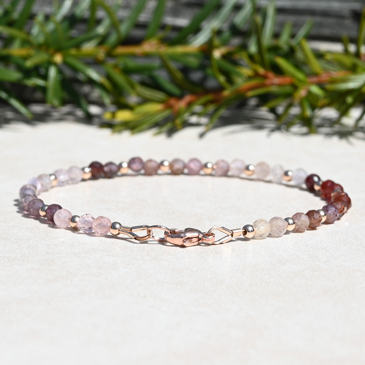 Natural Multi Spinel and Rose Gold Women's Gemstone Beaded Bracelet