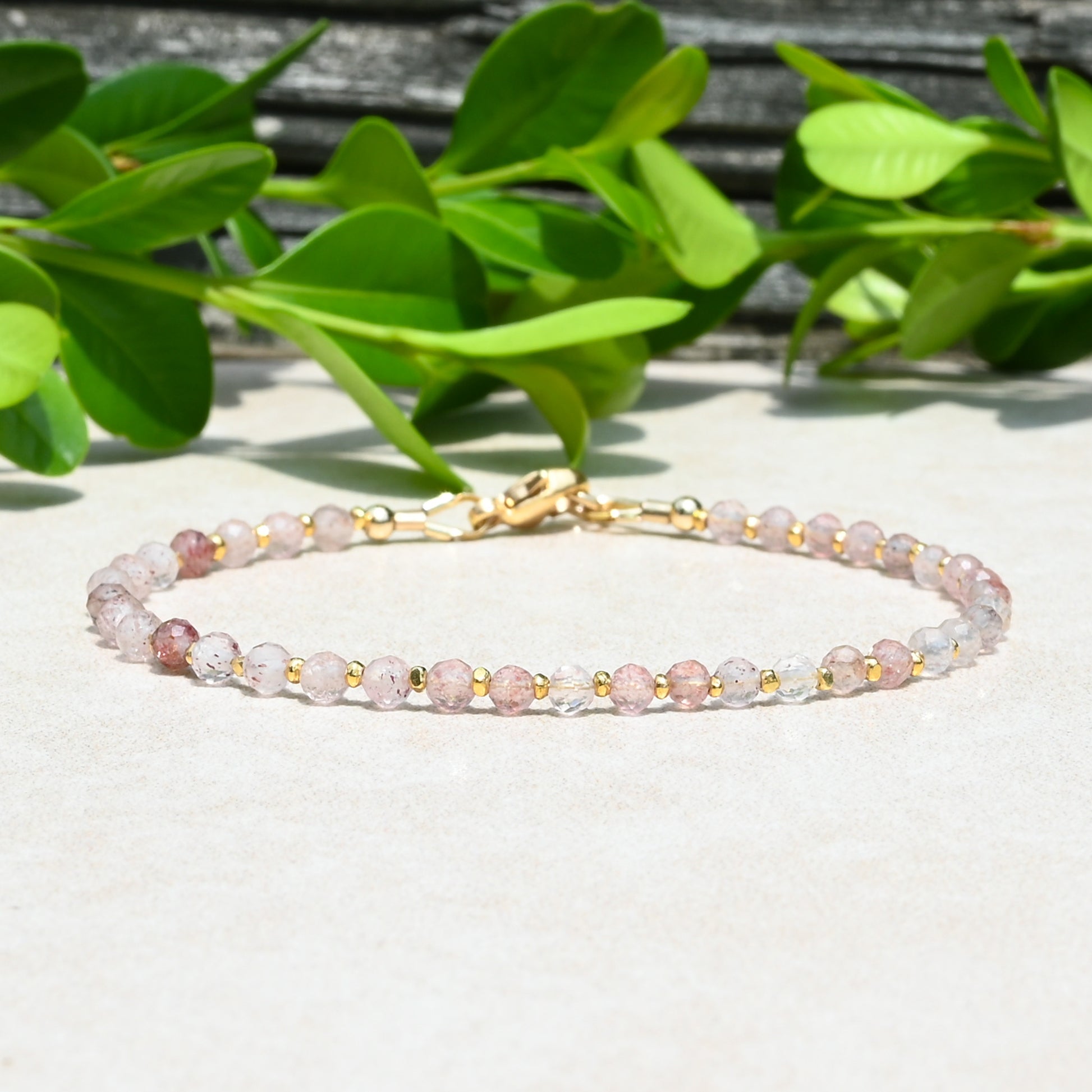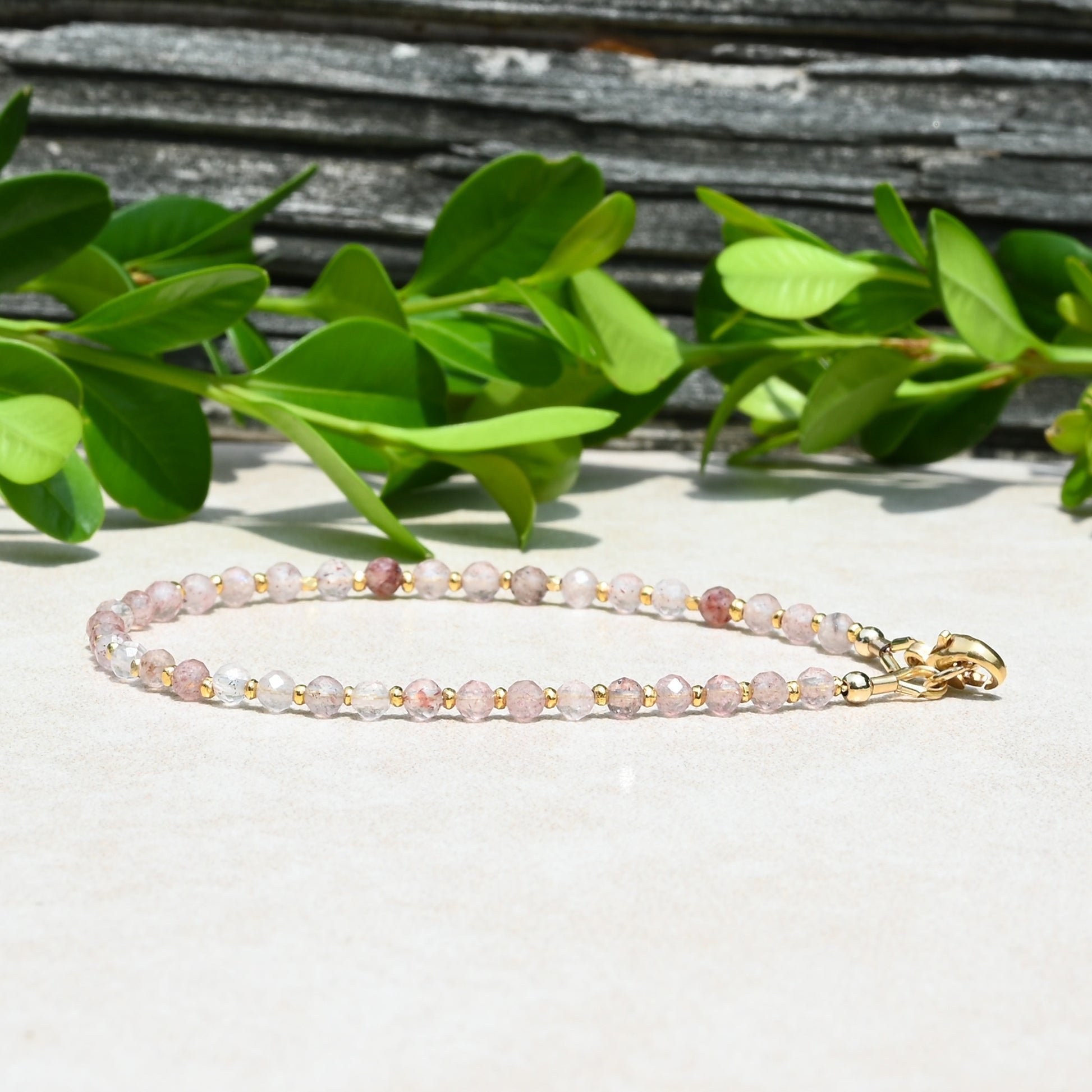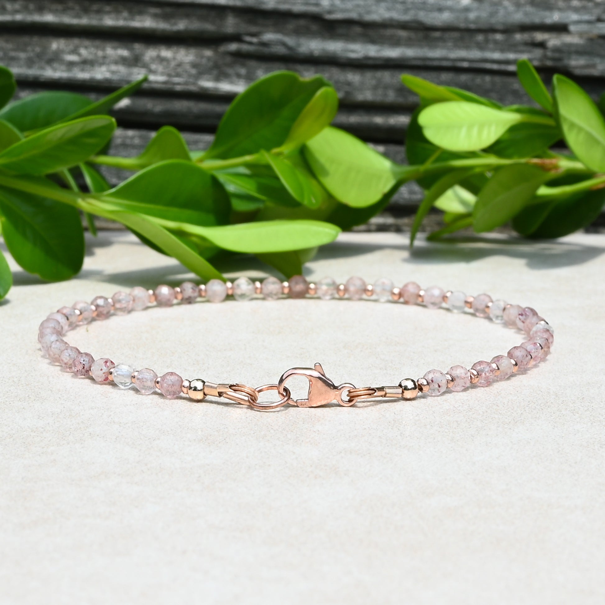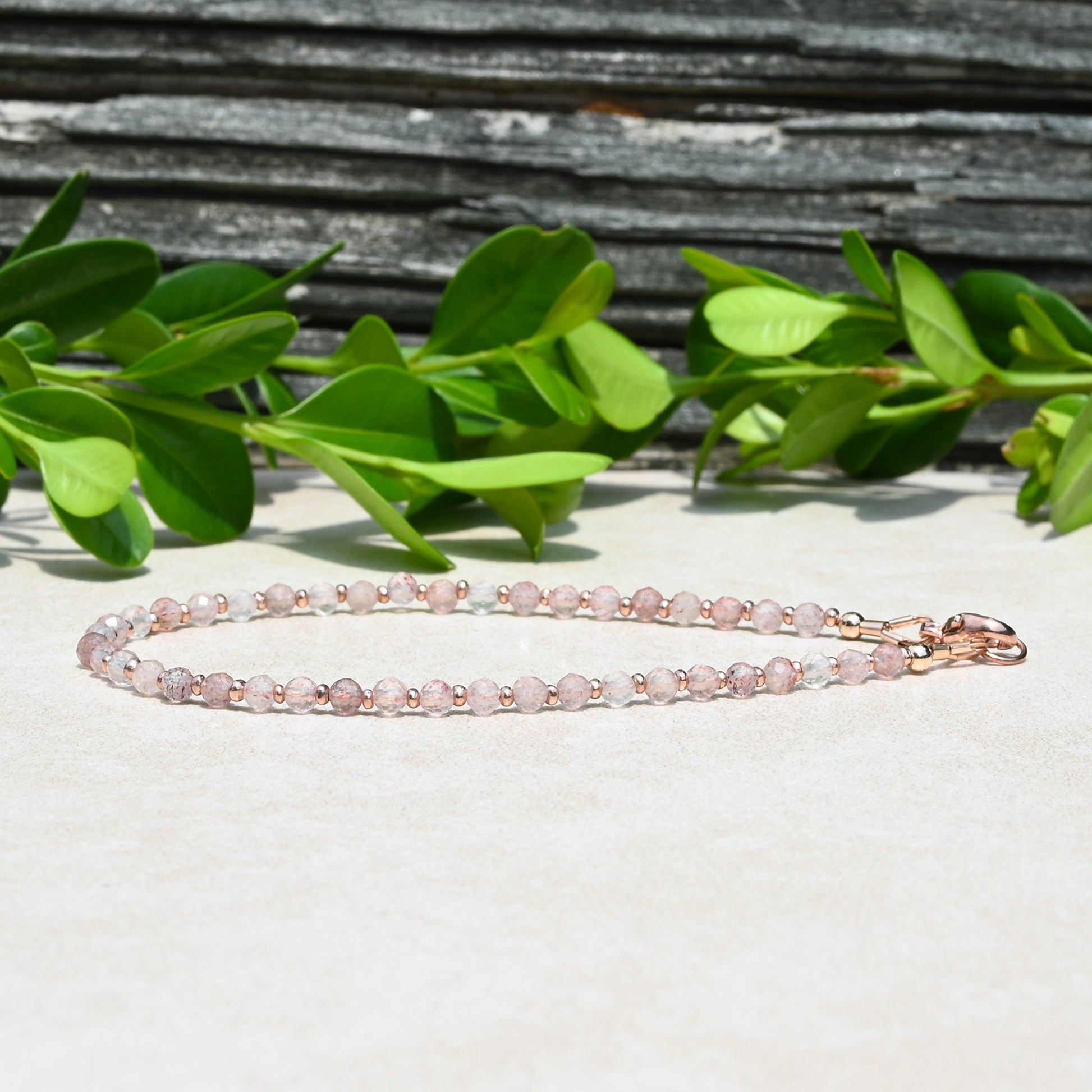 Natural Strawberry Quartz and Rose Gold Women's Gemstone Bracelet