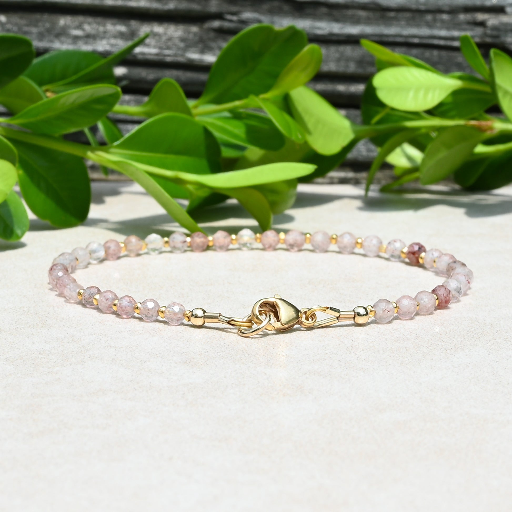 Indulge in the lavish and stylish allure of Rose Gold Filled & Strawberry Quartz. This bracelet will enhance any ensemble and captivate onlookers. Embrace your inner fashionista and make a statement with this gorgeous jewelry.