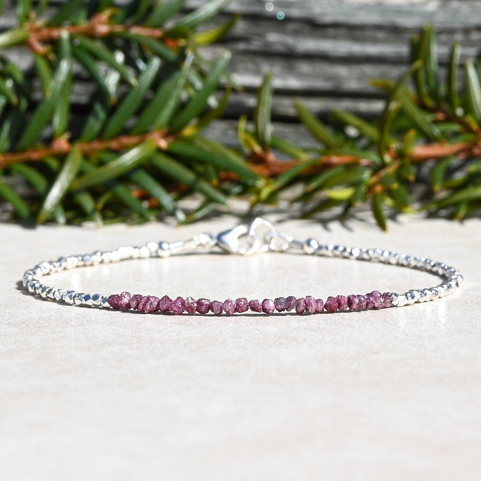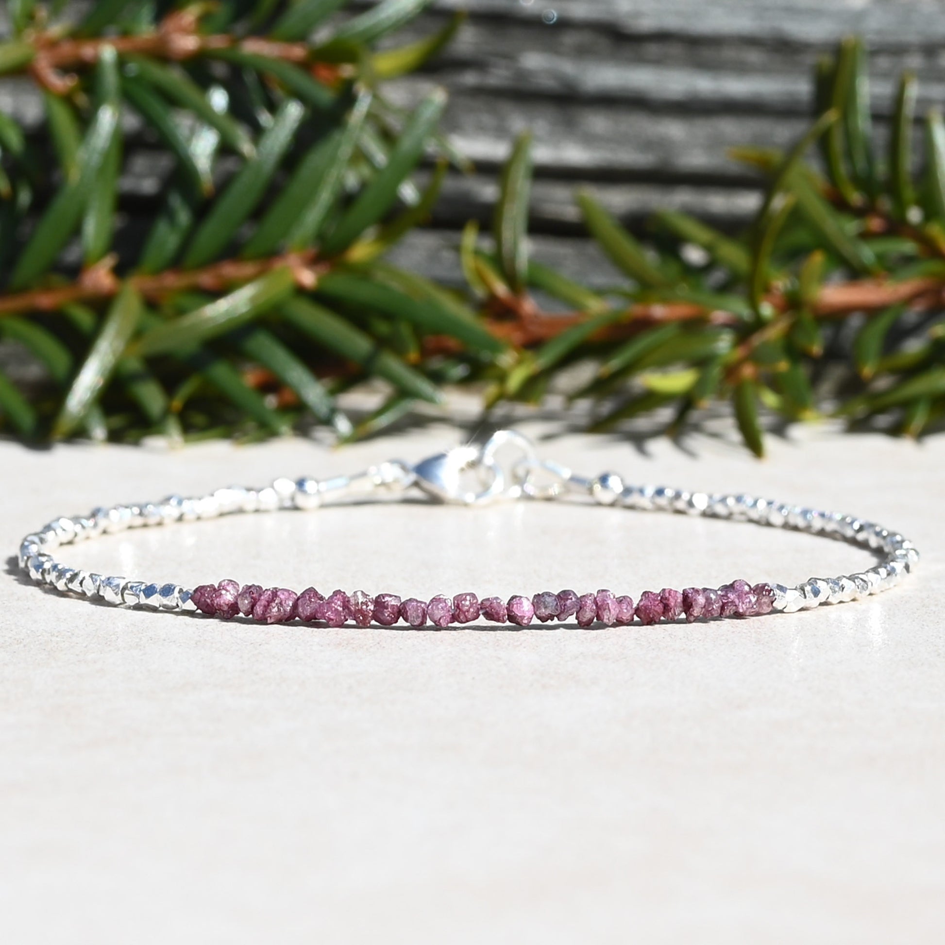 This raw pink diamond bracelet shines uniquely with its conflict-free design. Customizable according to your desired size and finish, this bracelet is perfect for those born in April, or simply anyone seeking a special piece of jewelry.