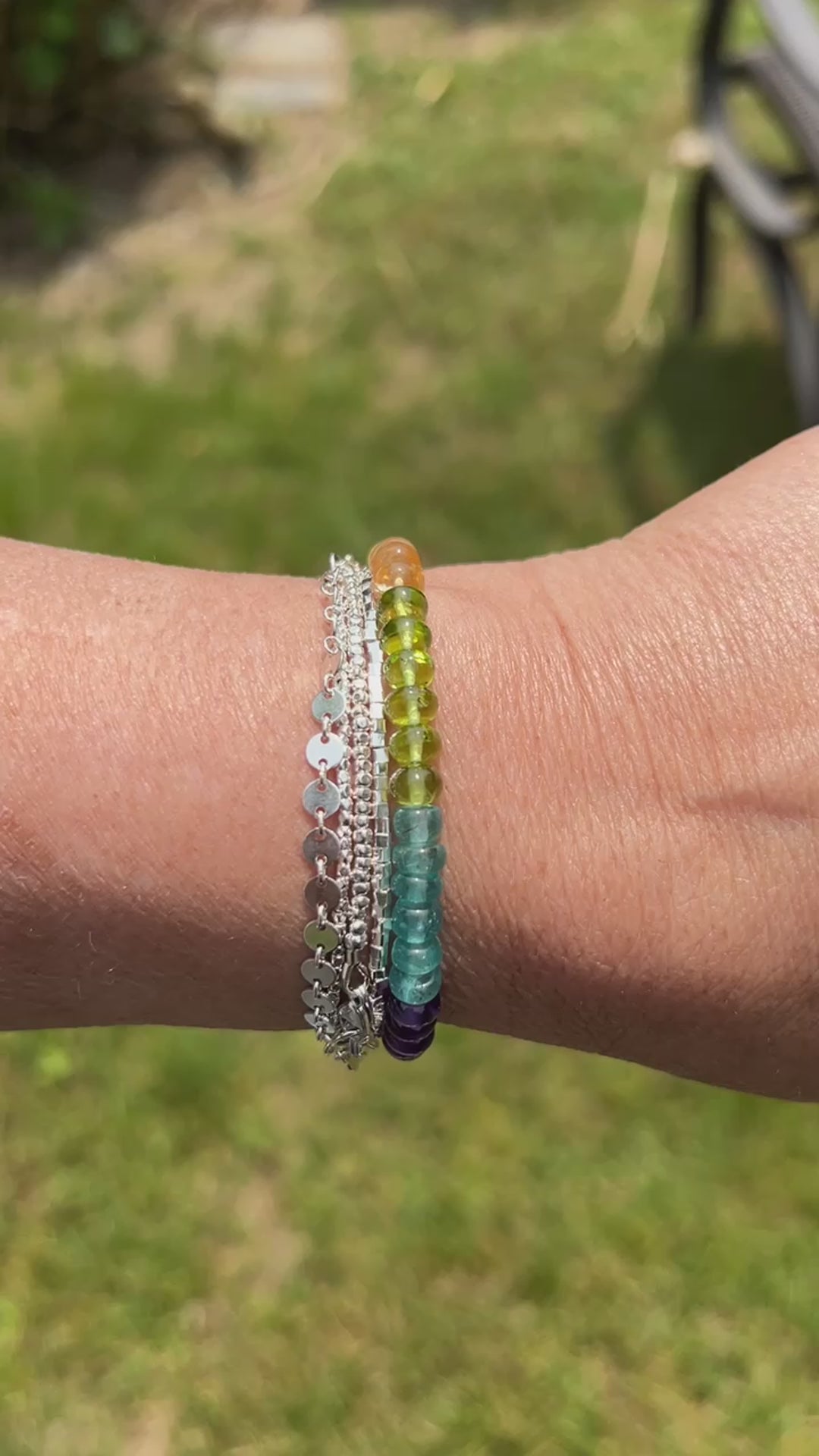 - 6mm Rainbow Gemstones: This bracelet is adorned with a visually captivating array of Jade, Carnelian, Citrine, Peridot, Amethyst and Apatite gemstones.