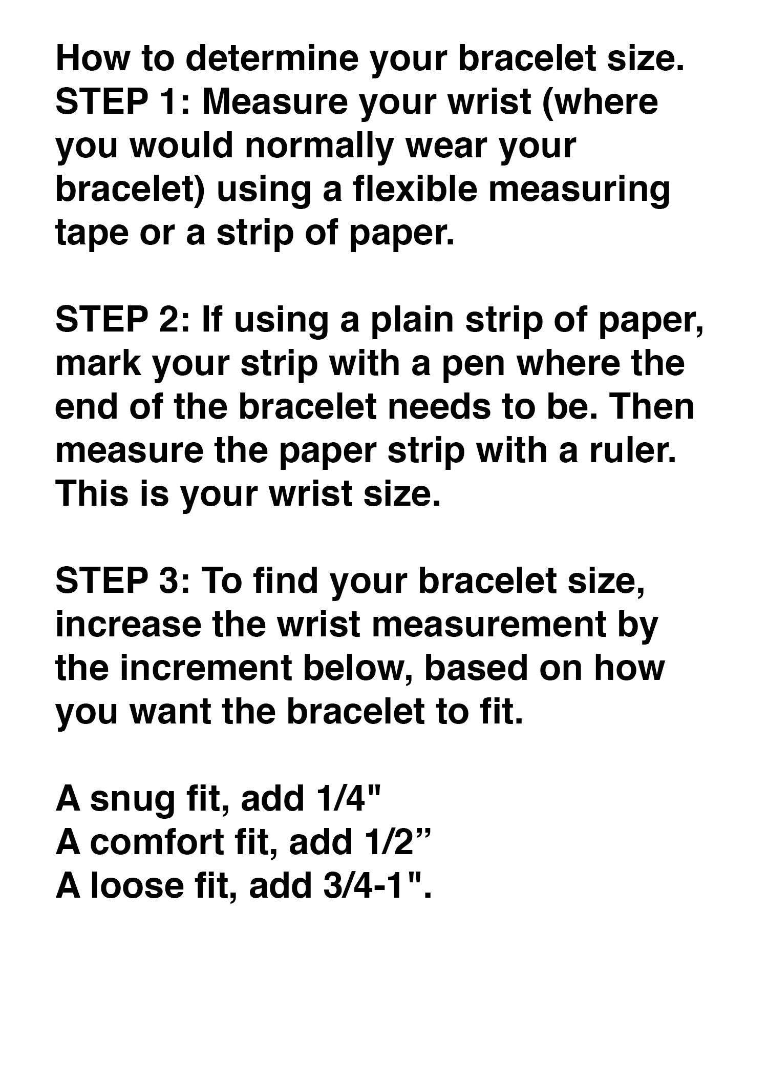 Step 3: To ascertain your perfect bracelet length, add a little extra to your wrist measurement based on your desired fit: