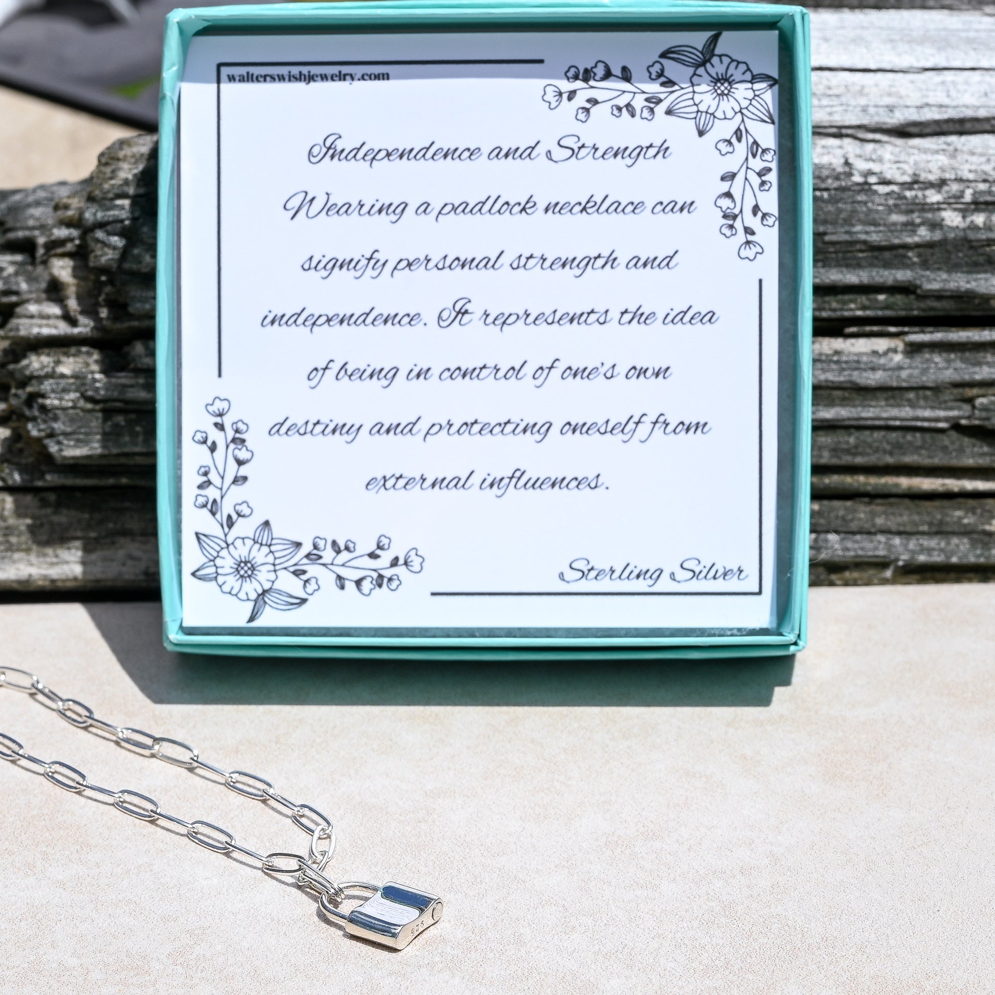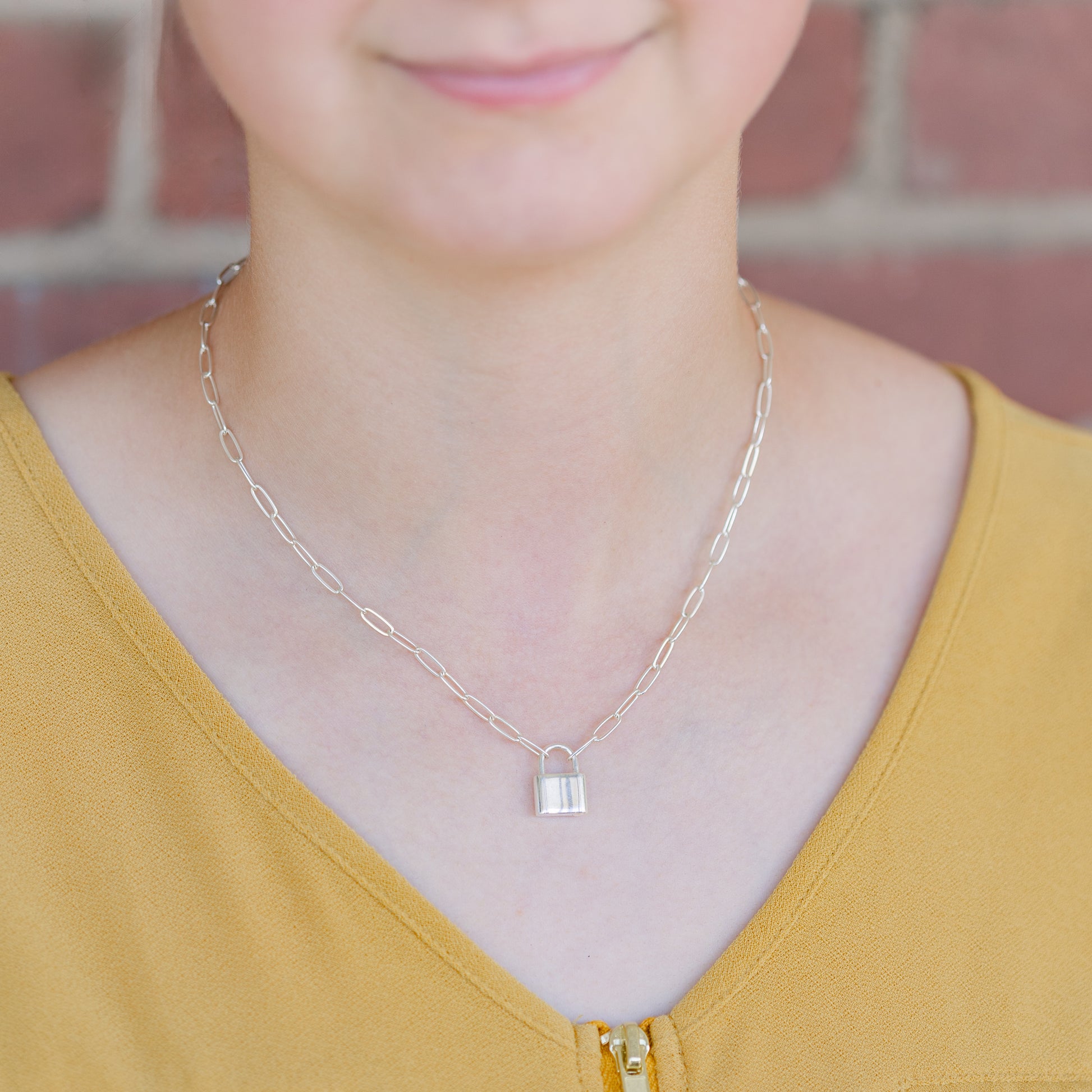 This stunning necklace represents independence and strength, making it an ideal gift for someone heading off to college or facing challenges. The functional padlock in sterling silver serves as both a clasp and a powerful symbol of your inner fortitude and self-reliance, complemented by a gorgeous paperclip chain.