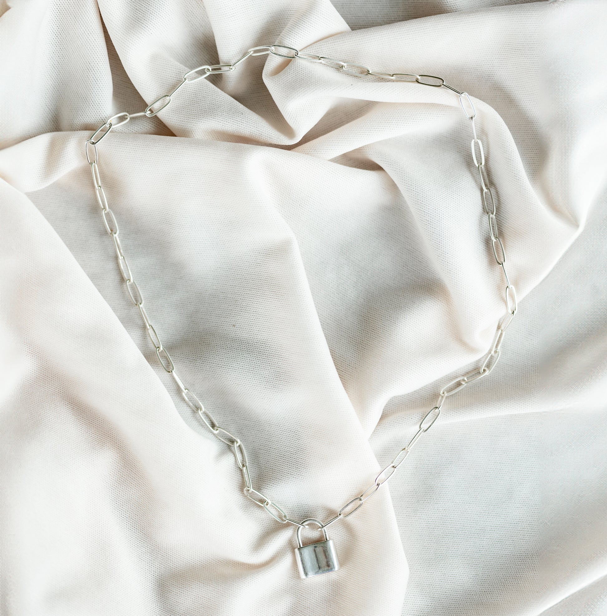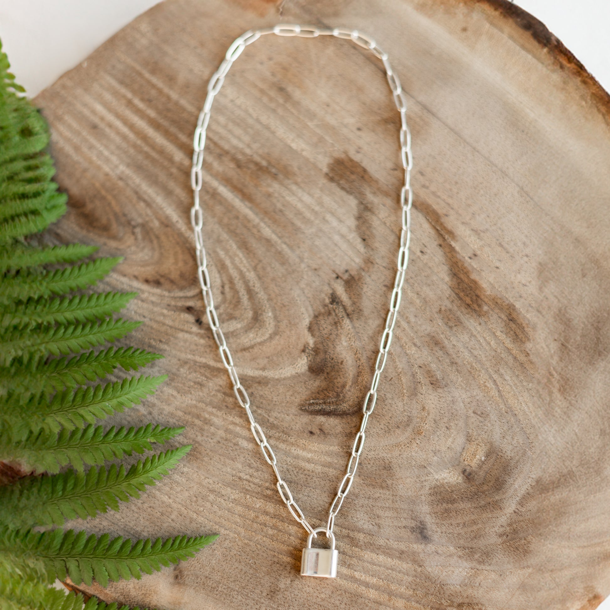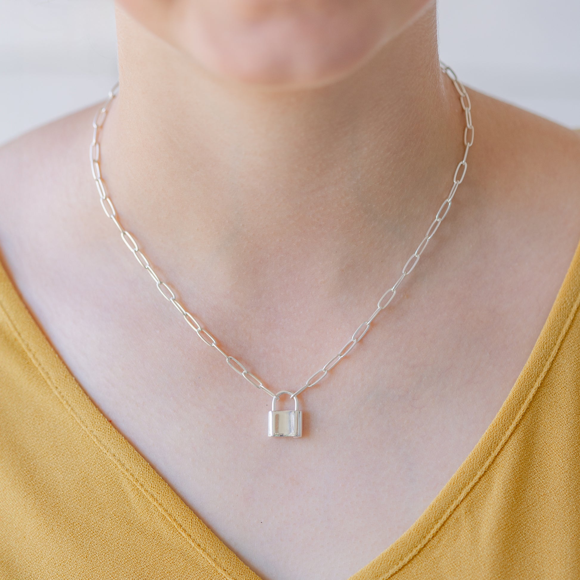 Sterling Silver Paperclip Chain & Padlock Necklace, Symbolizes Independence & Strength